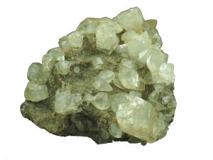Calcita.CaCO3. H:3. G: 2,71. Brillo vítreo terroso. Color generalmente de blanco a incoloro, pero puede tener diversos tonos grisáceos, rojizos, verdosos, azulados y amarillentos. El hábito es muy variado, principalmente prismático, romboédrico y escalenoédrico. La variedad químicamente pura y ópticamente limpia e incolora se conoce como espato de islandia. Muestra fácil efervescencia en HCl diluido frío, al contrario que la dolomita. Componente principal de las rocas calizas, la cuales se han formado, en gran parte, por la deposición de grandes espesores de material calcáreo, a base de la acumulación de caparazones y esqueletos de animales marinos, en el fondo de lagos y mares; solo una pequeña proporción de estas rocas se han formado directamente por la precipitación del carbonato cálcico. Se usa para la fabricación de cementos y cal para confección de morteros. La caliza es materia prima de la industria química, y se utiliza como fundente del vidrio, en cerámicas, cosmética, y en la industria de la construcción para decoración de fachadas exteriores, y finamente triturada como acondicionador del suelo y para encalar paredes. El espato de islandia se usa para la fabricación de diversos instrumentos ópticos como el prisma de Nicol para obtener luz polarizada.